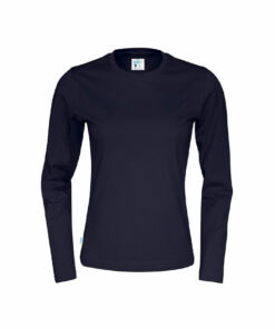 Pitkähihainen T-paita. Kavennettu malli, jossa pääntiellä siisti ribbineulos. Valmistettu hienolaatuisesta Reilun kaupan luomupuuvillasta.